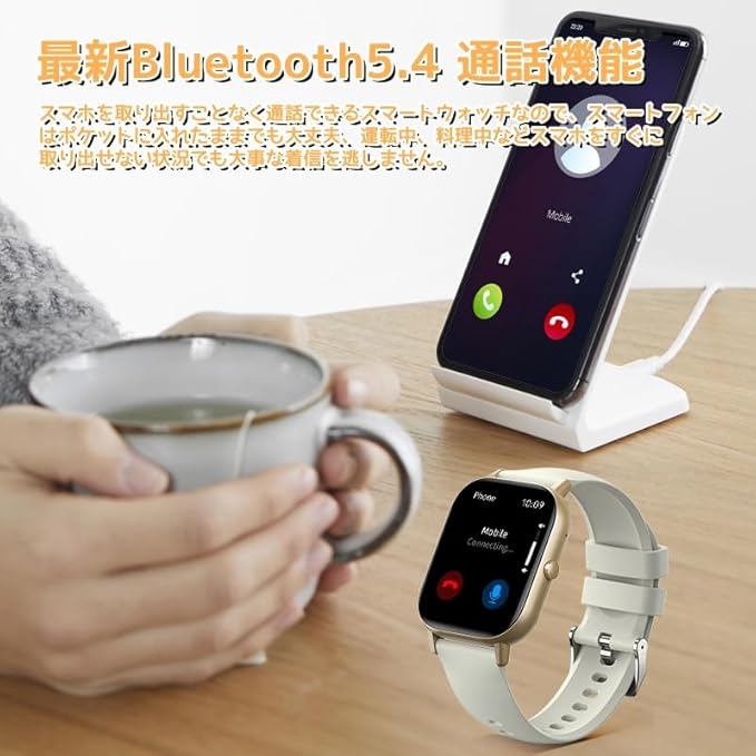 【最新Bluetooth5.4 通話機能&連絡帳同期】スピーカーと高性能マイクを内蔵し、専用アプリと接続すると、スマートウォッチから直接電話をかけたり、応答したりできるほか、携帯側の連絡帳を同期できるため、着信のお名前が表示され、誰からの電話番号が分かります。スマホを取り出すことなく通話できるスマートウォッチなので、スマートフォンはポケットに入れたままでも大丈夫、運転中、料理中などスマホをすぐに取り出せない状況でも大事な着信を逃しません。毎日の仕事や生活、ドライブに大きな利便性を提供します。