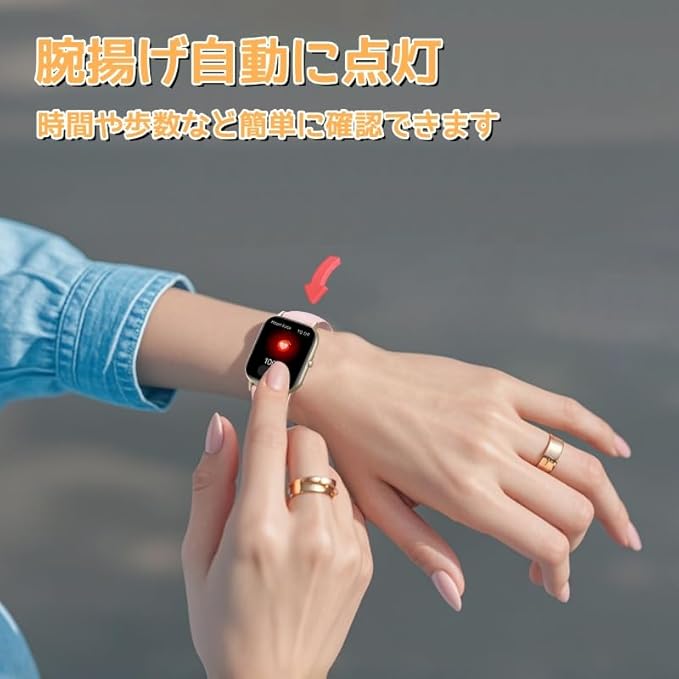 【豊富な機能搭載・百種類文字盤】 このスマートウォッチiPhone Androidに対応しており、毎日の歩数を記録するだけでなく、座りすぎを防止するリマインダー、目覚まし時計、音楽再生、天気予報、メッセージ通知やBluetooth通話など、様々な便利な機能が備わっています。日々の生活に大きな利便性と向上をもたらしています。スマートウォッチには6種類の異なるスタイルの文字盤があり、画面を長押しして左右にスワイプすることで、好みの文字盤を選択できます。その他、専用アプリに接続すると、百種類以上の文字盤を選択でき、自分の好みに合わせてインターフェースをカスタマイズできます。
