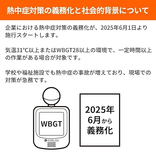 【2025年義務化対策に最適】 2025年6月からの熱中症対策義務化に備え、企業や団体での早期導入が急務。労働環境や教育現場の安全確保を強力にサポート。