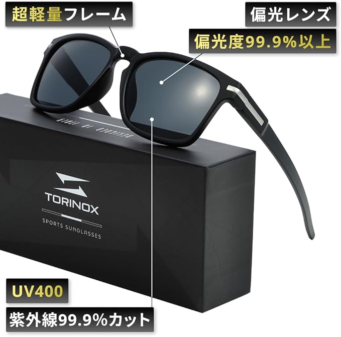 TORINOX(トリノクス)のサングラス(偏光レンズ、軽量設計)はメンズ、レディース問わず、普段使いから運転や釣り等まで幅広くお使い頂けるこれまでに無かったコンセプトのスポーツカジュアルサングラスです。コストと品質(偏光レンズ、UV400、軽量設計)のバランスを重視しアクセスしやすい金額設定でありながら長期間の使用に耐える耐久性とスタイルで運転、釣り、自転車、ドライブ、ロードバイク、野球、ゴルフなどのシーンに対応します。