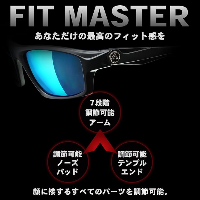 あなただけの理想のフィット感を得られる。自在にセルフフィッティング可能なスポーツサングラス A-FIT FITMASTER(フィットマスター)シリーズ。メガネの聖地、福井県のフレーム設計技術を凝縮した日本人の骨格に最適なアジアンフィット設計。顔と一体になったような快適なかけ心地を。