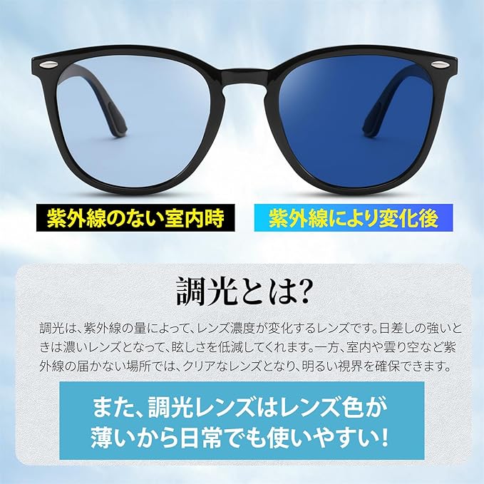 高品質な素材:高品質の合成樹脂レンズと頑丈で耐久性のある金属フレームを使用し、快適で軽量な装着感を確保します。また、優れた耐スクラッチ性能と耐久性を兼ね備えています。