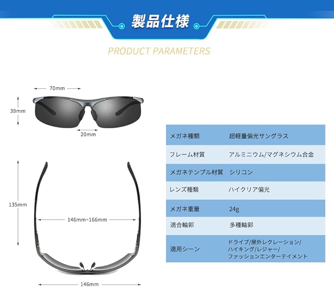 ➤【掛け心地の良さを追求】軽量AL-MG合金設計は、サイクリング、ドライブ、ランニング、釣り、レース、スキー、登山とすべての屋外活動の愛好家にとって理想的です。