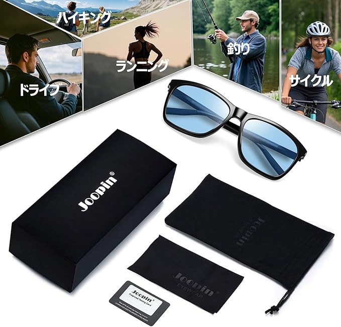 【パッケージ内容】セット内容:JOOPINサングラス本体 1、布製バッグ 1、メガネ拭き 1、偏光テストカード 1が付属されています。メンズ 運転用サングラスは、ファッションな外出をサポートし、強い太陽光を恐れません