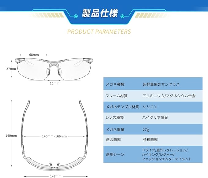 ✅➤【掛け心地の良さを追求】軽量AL-MG合金設計は重さ約26g、上品な質感の漂う金属フレームには、 無電解ニッケルめっき技術を採用することにより安定性が強く、 長時間装着していても表面が剥がれ難く、 違った品質を表現しています。