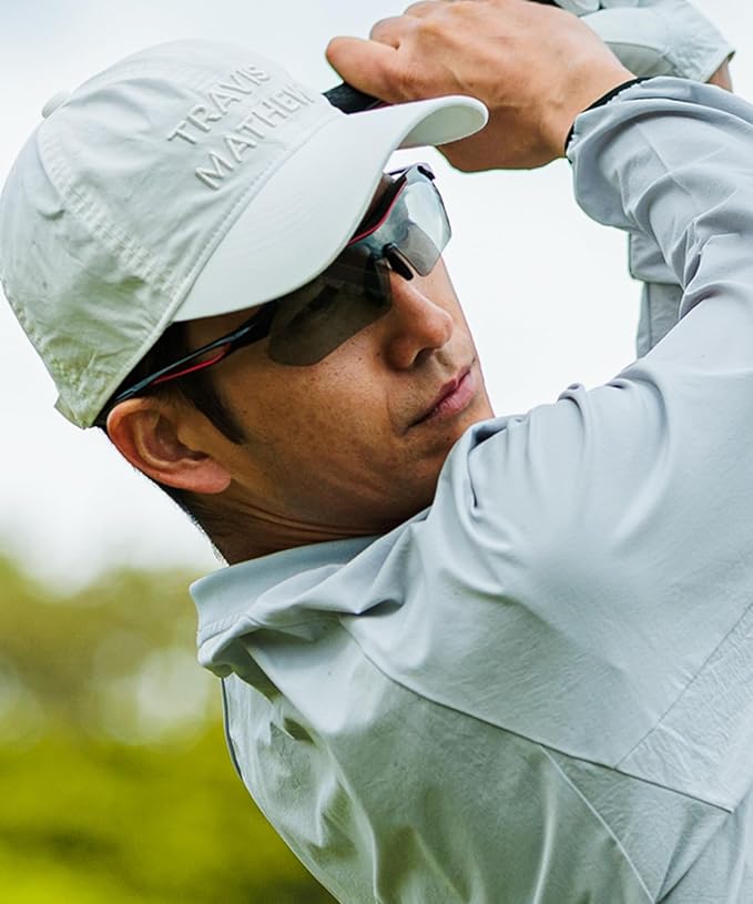 ぎらつく乱反射光をカットし目に優しい光だけを透過。最高レベルの偏光度99%の偏光フィルターを搭載し、ゴルフやランニング、テニス、野球などあらゆるシーンで快適な視界を実現。