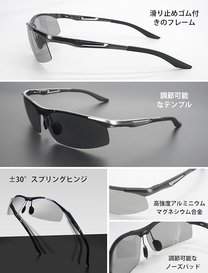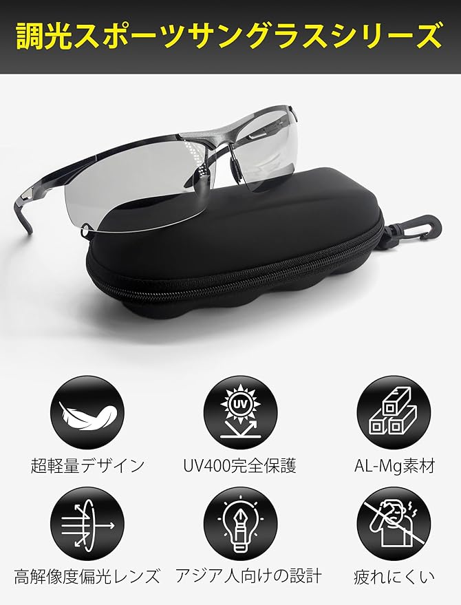 [ヘルスネスト] [H.Nest] 偏光スポーツサングラス 調光機能 偏光レンズ 紫外線カット 超軽量 アジア人向け設計 uvカット 釣り ドライブ 野球 自転車 ランニング 登山 ゴルフ対応 | oioioichan