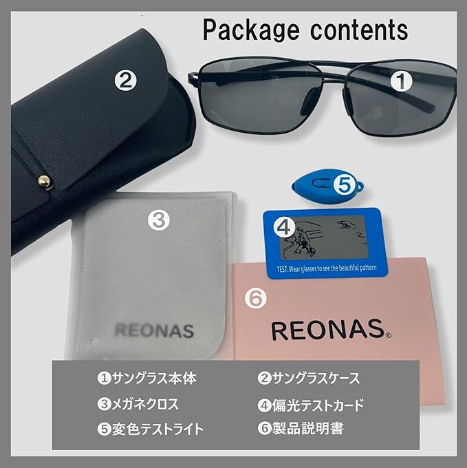 【PUレザー眼鏡ケース付属】【マイクロファイバークロス付属】【偏光テストカード・変色テストライト付属】