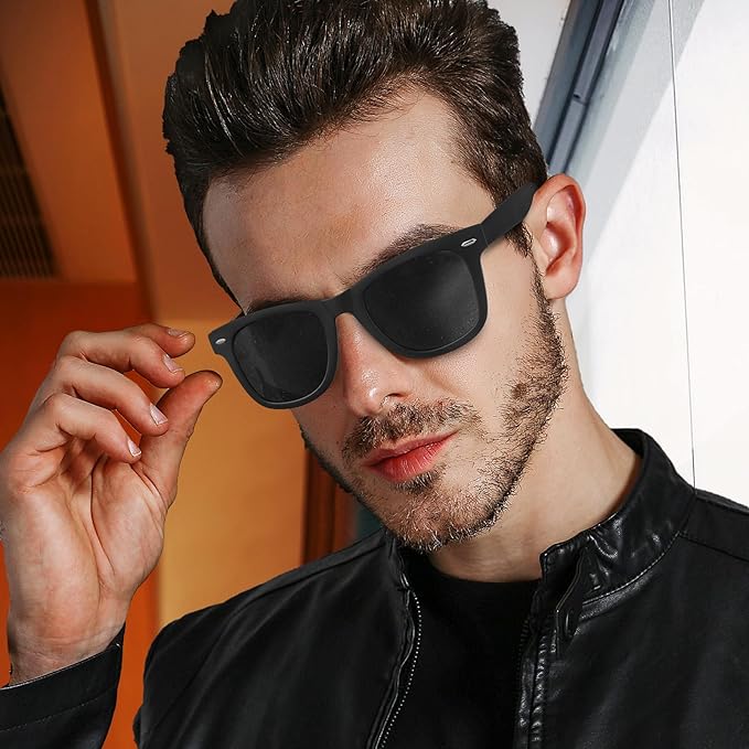 クラシックなスクエアフレームデザイン - 偏光レンズの軽いウェリントンタイプサングラス、常にトレンドに敏感な人たちから支持されています。サングラスのワンピース鼻パッドは、あなたの頭にサングラスを置くときにヘアピンの問題を避けることができます。偏光サングラスはユニセックスなサングラスで