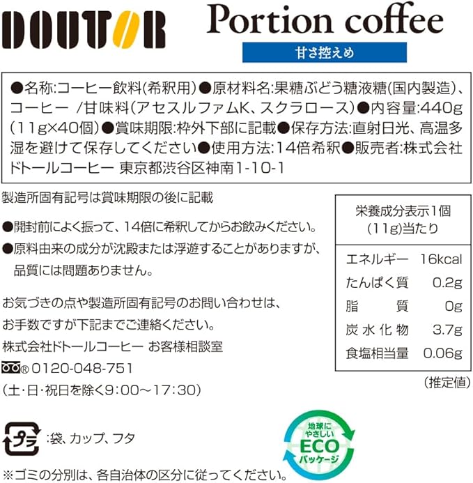 原材料:果糖ぶどう糖液糖(国内製造)、コーヒー/甘味料(アセスルファムK、スクラロース)