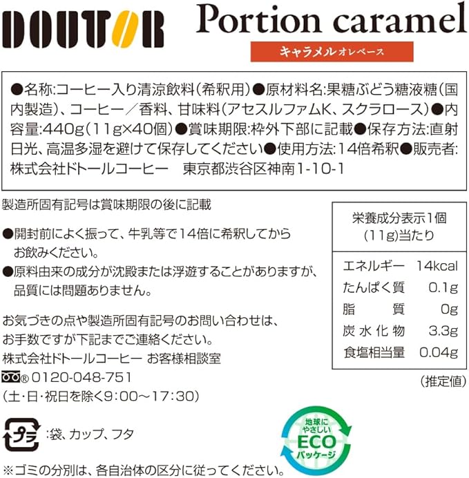原材料:果糖ぶどう糖液糖(国内製造)、コーヒー/香料、甘味料(アセスルファムK、スクラロース)