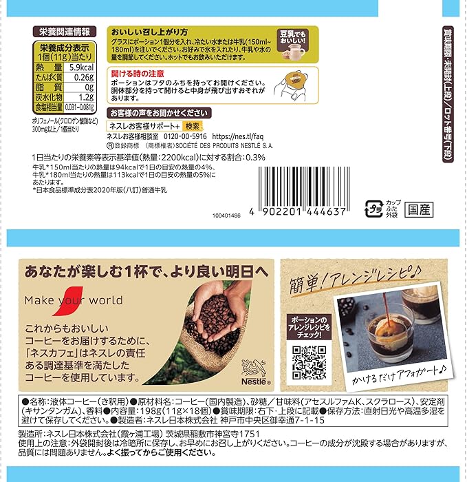 牛乳で割るだけで、淹れたての上質な香りとコク深めでしっかりした味わいの甘さひかえめアイスラテが簡単に楽しめます。お好みで水や豆乳、低脂肪乳でも楽しめます。