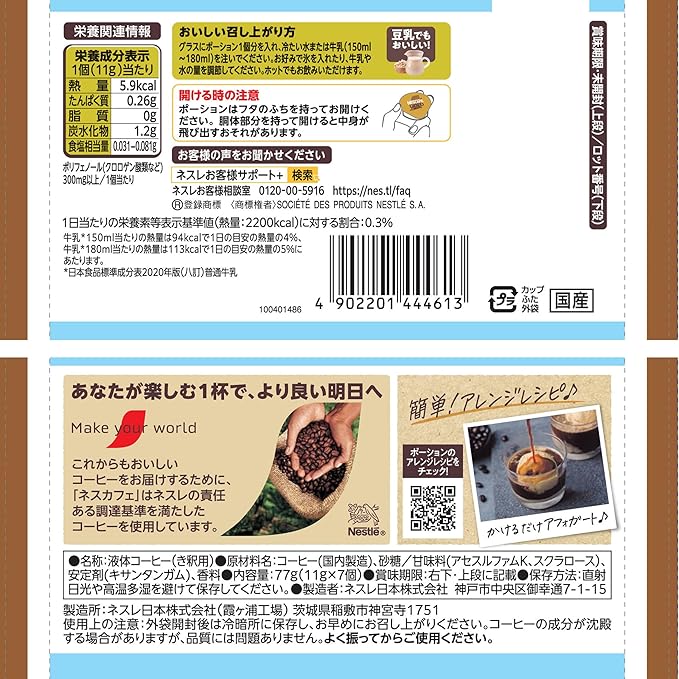 ネスカフェ ゴールドブレンド ポーション 甘さひかえめ 7個,アイスコーヒー,濃縮,希釈