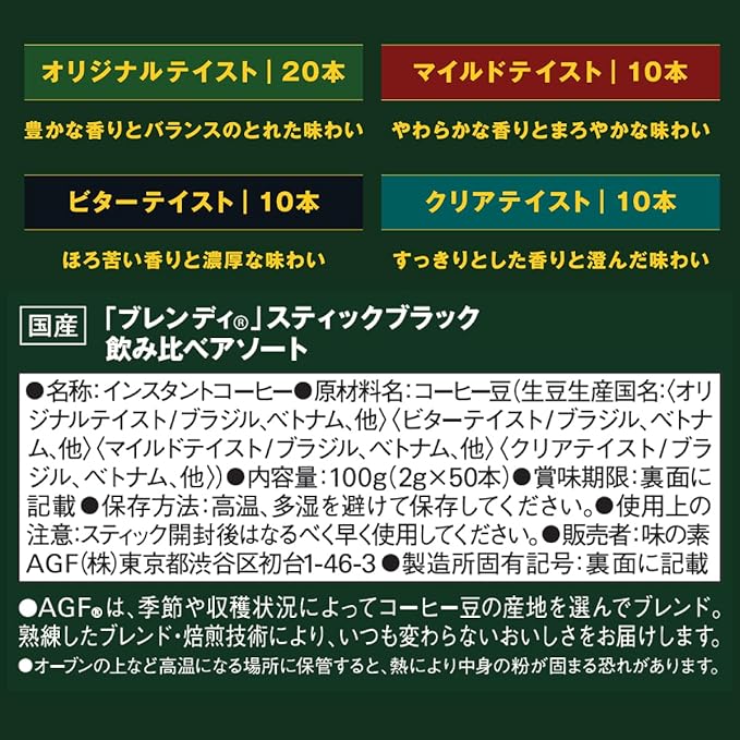 原材料:コーヒー豆(生豆生産国名:<オリジナルテイスト/ベトナム又はラオス又はその他><ビターテイスト/ベトナム又はブラジル又はその他><マイルドテイスト/ベトナム又はラオス又はその他><クリアテイスト/ベトナム又はラオス又はその他>)
