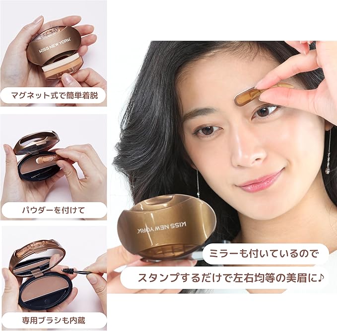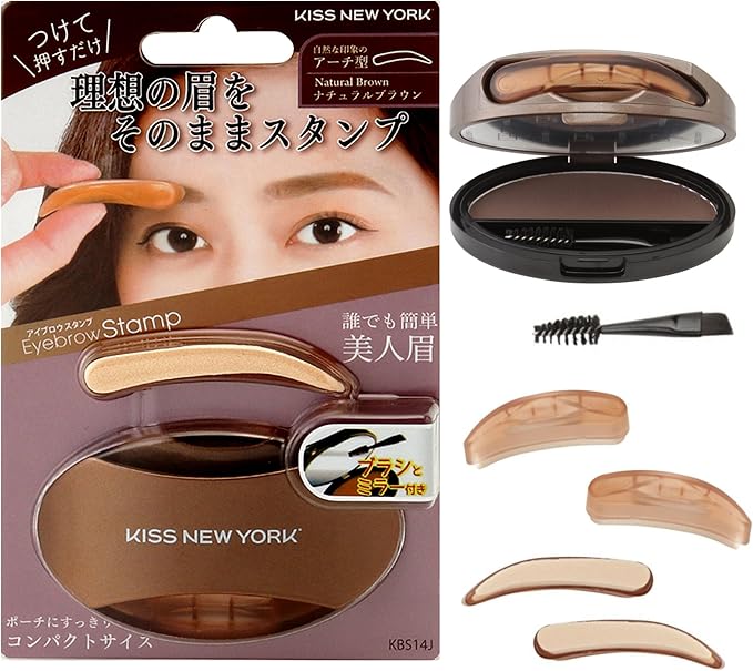 【キスニューヨーク 限定替えスポンジ付き】アイブロウスタンプ 眉スタンプ 眉毛スタンプ 眉ポン 眉メイク kissnewyork (ナチュラルブラウン, KBS14J(アーチ) テンプレート 型 | oioioichan