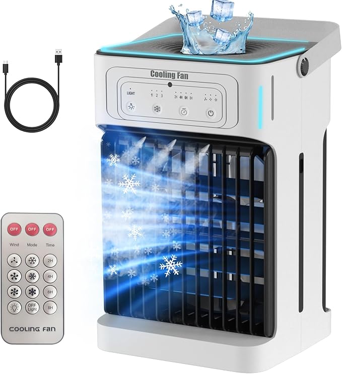 冷風機 強力 冷風扇 卓上クーラー 冷風扇風機【業界初の二層ファンブレード&デュアルモーター設計】1000ml大容量 大風量 冷感UP 30dB静音 耐久性向上 氷入れ可 瞬間冷却 小型 水冷エアコン 9W 省エネ 3段階風量 3段階噴霧量 冷風 自然風 加湿機能 110 風向調節可能 USB給電式 切タイマー 6色ライト タッチ/リモコン 夏 節電対策 (Bホワイト+ブラック) | oioioichan