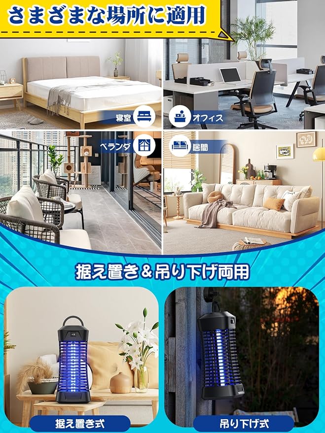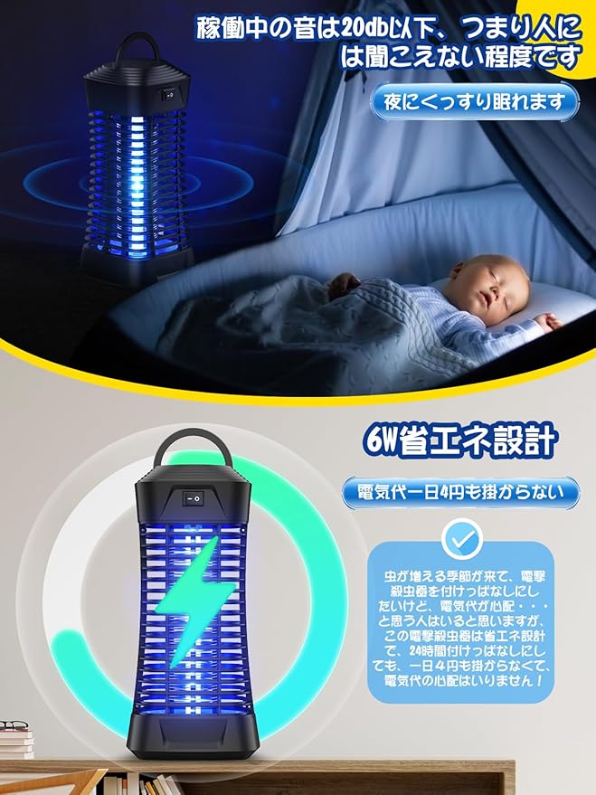 電撃殺虫器 スイッチ付き コバエ取り 殺虫灯 蚊取り 捕虫器 虫除け こばえとり 6W UV光源誘引式 365nm波長 薬剤不要 殺虫ライト 防虫 コバエ モスキート 虫 対策 室内 屋外 静音 吊り下げ式&据え置き式両用 | oioioichan