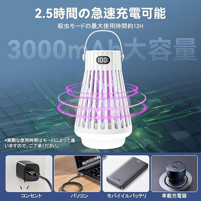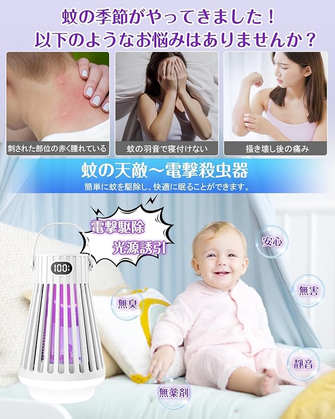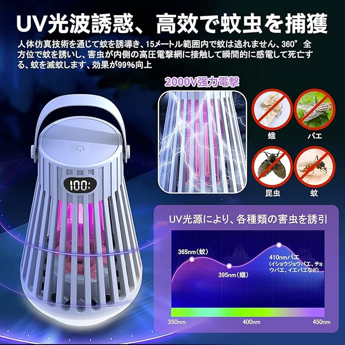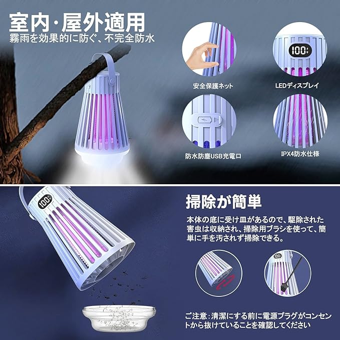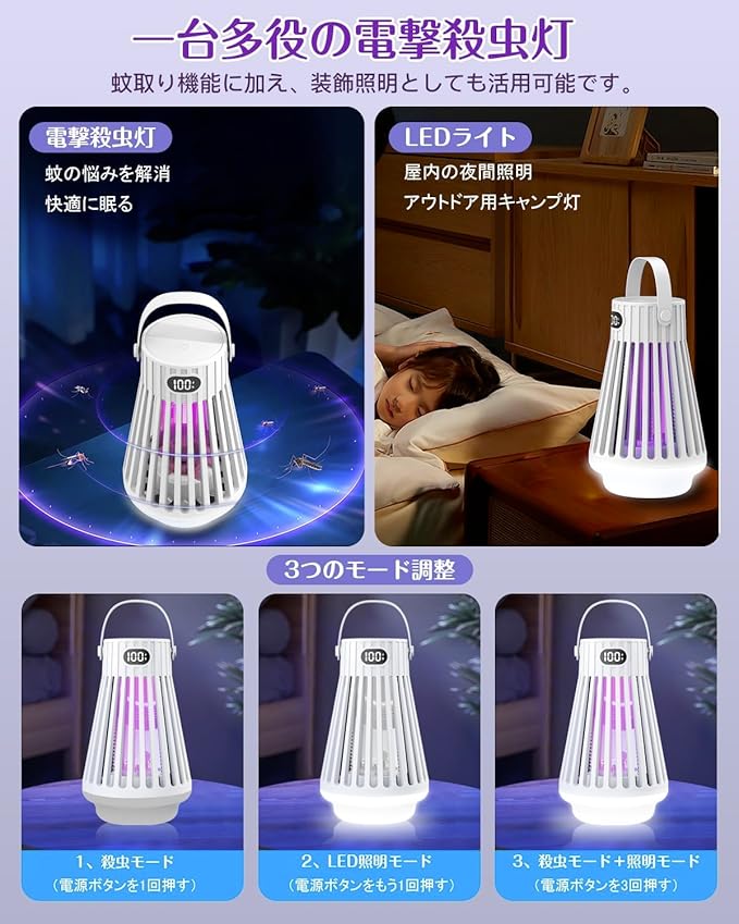 電撃殺虫器 コバエ取り 蚊取り【2025年夏最新革新版】 LAOSEP 人気版 殺虫灯 LED誘虫灯 360 強力蚊除け USB充電 LEDランプ照明 静音設計 省エネと経済 超長待機 人体無害 コバエ対策 蚊虫対策 室内 室外 吊り下げ式&据え置き式両用 台所/寝室/居間/オフィス/飲食店/キャンプ/登山/夜釣りなどに適用 | oioioichan