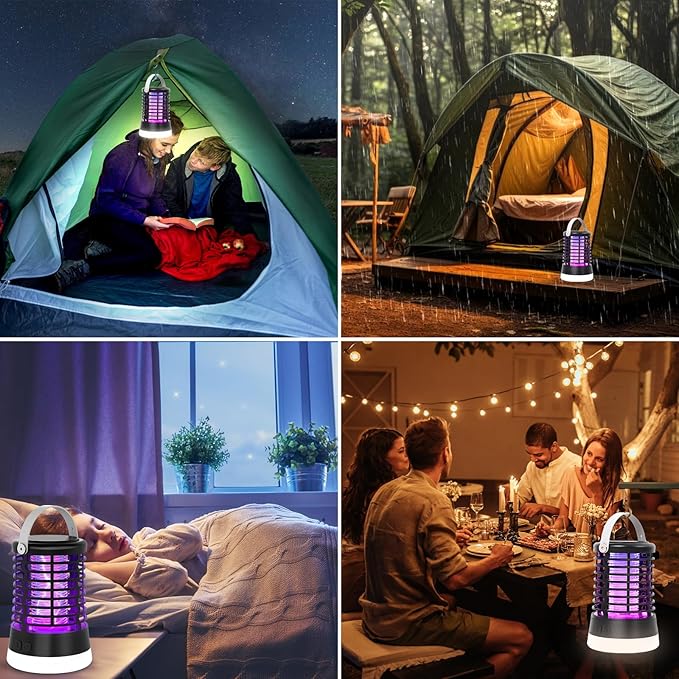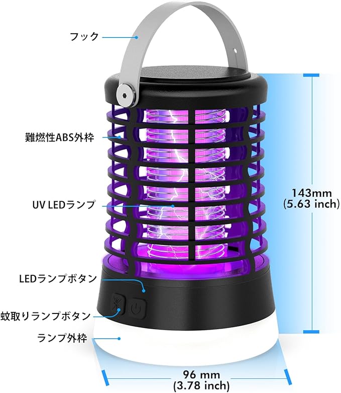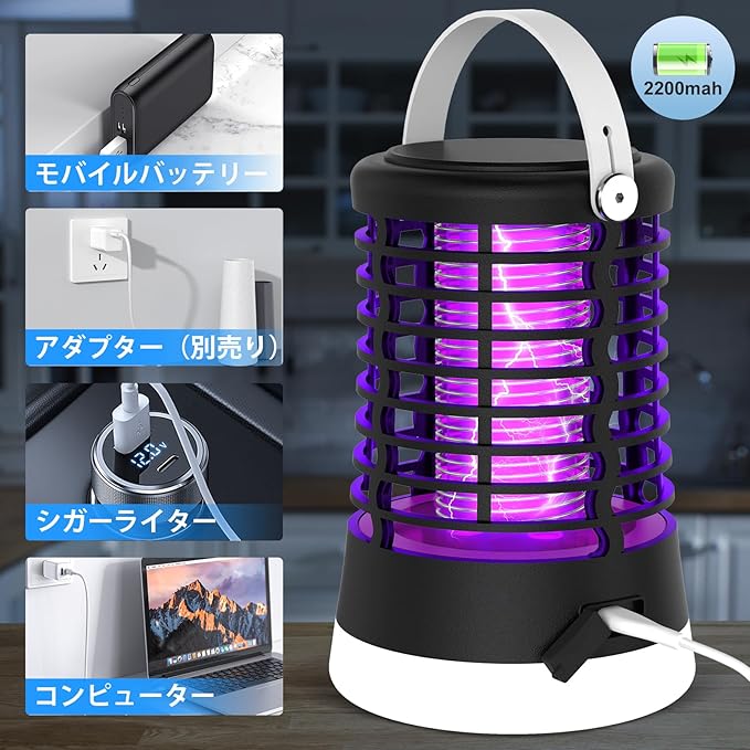 電撃殺虫器 蚊取り 屋外 殺虫灯 コバエ取り 防水 捕虫器 充電式 吊り下げ&置き両用 IPX6完全防水 3つライトモード UV光源誘引式 薬剤不要 静音 省エネー 虫よけ 害虫対策 アウトドア/寝室/居間/台所/ホテル適用 2年保障 | oioioichan