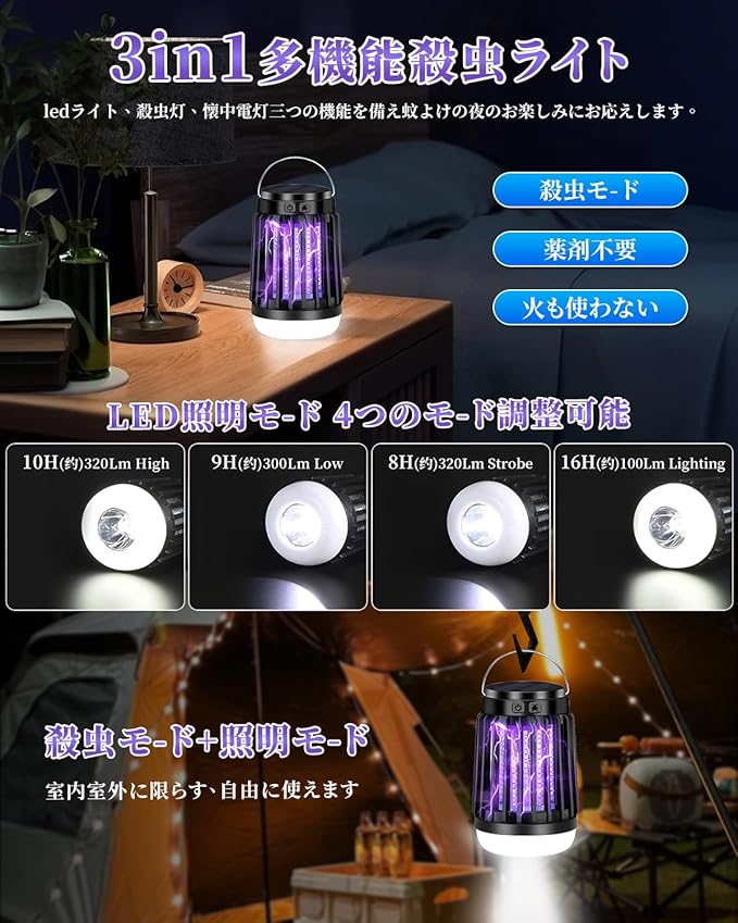 【..co.jp限定】コバエ対策 虫除け 吊り下げ Sudsty 電撃殺虫器 殺虫灯 UV光源吸引式 Type-C 充電式 2200mAh大容量 薬剤不要 コバエホイホイ 玄関 虫除け 捕虫器用蛍光ランプ 防水 コバエ取り 蚊除け 蚊取り 省エネ 室内/屋外 両用 静音 据え置き式両用 寝室/台所/居間/オフィス/玄関/キャンプ/登山/夜釣 日本語説明書付. | oioioichan