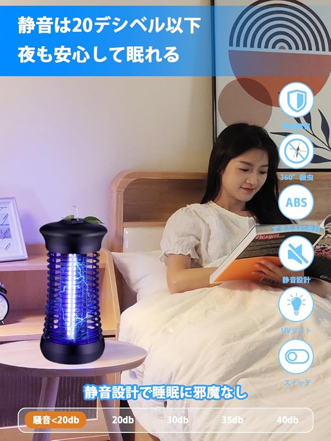【物理虫除け・薬剤不使用・安全設計】光で虫を引き寄せ、電撃ショックで撃退するコバエ 駆除です。いや~な蚊・ハエ・毒蛾を駆除し、快適にお過ごしいただけます。一切な薬剤を使わないので、稼働中に臭いや煙や有害な化学物質なども出ません、物理的に害虫を退治できます、妊婦や赤ちゃんやペットにもがいる家庭にも安心してご利用いただけます。従来の蚊取り線香や化学薬品を使わないので、臭いが発生せず、無毒で安全です。360 全方位スキャナーしたりして蚊、コバエ、蛾などをしっかり誘惑します。※アカイエカ、ヒトスジシマカ(ヤブカ)、チカイエカ、ネッタイシマカ、ショウジョウバエ、チョウバエ、イエバエなど色々なの羽虫に有効!快適にお過ごしいただけます。シェルは絶縁性のABSプラスチック製で、高密度のシェルギャップは6mmであるため、指が高電圧ネットに誤って触れるのを効果的に防ぐことができます。妊婦さんと赤ちゃんと犬・猫などのペットがいるご家庭でも安心してお使いいただけます。