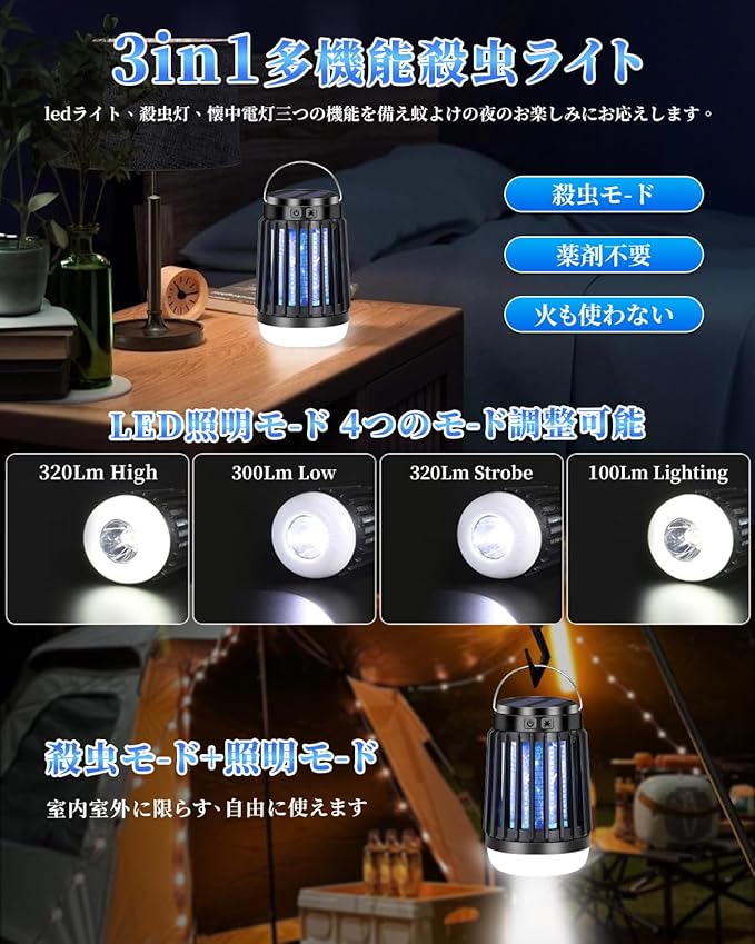 【..co.jp限定】コバエ対策 虫除け 吊り下げ Sudsty 電撃殺虫器 殺虫灯 UV光源吸引式 Type-C 充電式 2200mAh大容量 薬剤不要 コバエホイホイ 玄関 虫除け 捕虫器用蛍光ランプ 防水 コバエ取り 蚊除け 蚊取り 省エネ 室内/屋外 両用 静音 据え置き式両用 寝室/台所/居間/オフィス/玄関/キャンプ/登山/夜釣 日本語説明書付き | oioioichan