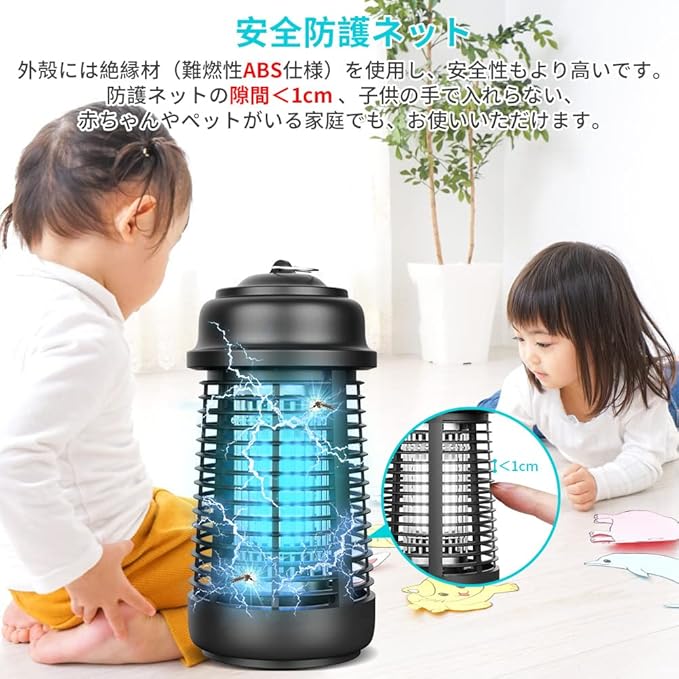 【薬剤不使用・安全設計】 UV光源誘引式の殺虫ライト、電撃で一瞬蚊や蛾などの虫を殺す!蚊取り線香より、物理的な方法で薬剤不要、毒素、煙や匂いなど全然なくて騒音もなし!様々な所に適用、プロの飲食店でも使われている、本格仕様の駆除器!小さなお子様と犬・猫などのペットがいるご家庭でも安心してお使いいただけます。
