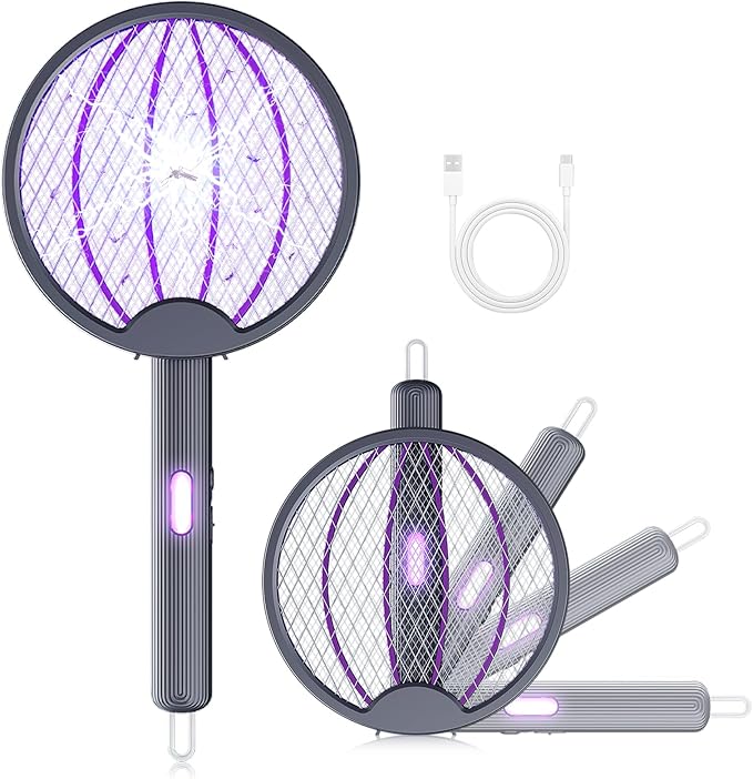 Justchee 電撃殺虫ラケット 蚊取りラケット 折り畳み式 3000V高圧電撃 手持ちモード/誘引モード 180度回転 USB充電 壁掛け型/手持ち/卓上置き 軽量 収納便利 虫対策 ハエ退治 蚊対策 害虫退治 虫除け キャップ アウトドア 屋外屋内兼用 (グレー) | oioioichan
