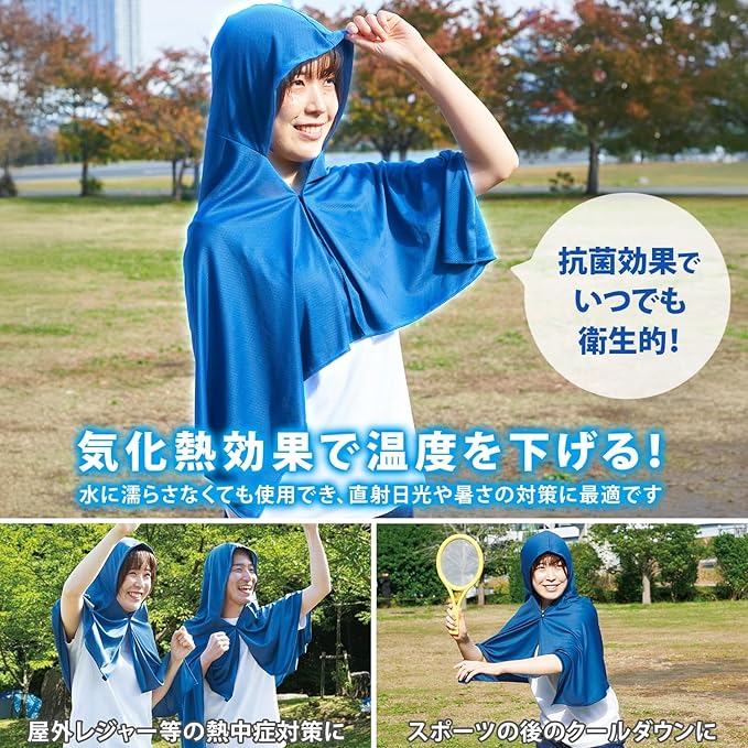 【直射日光や暑さ対策に】気化熱効果でひんやり涼しい冷感ポンチョです。