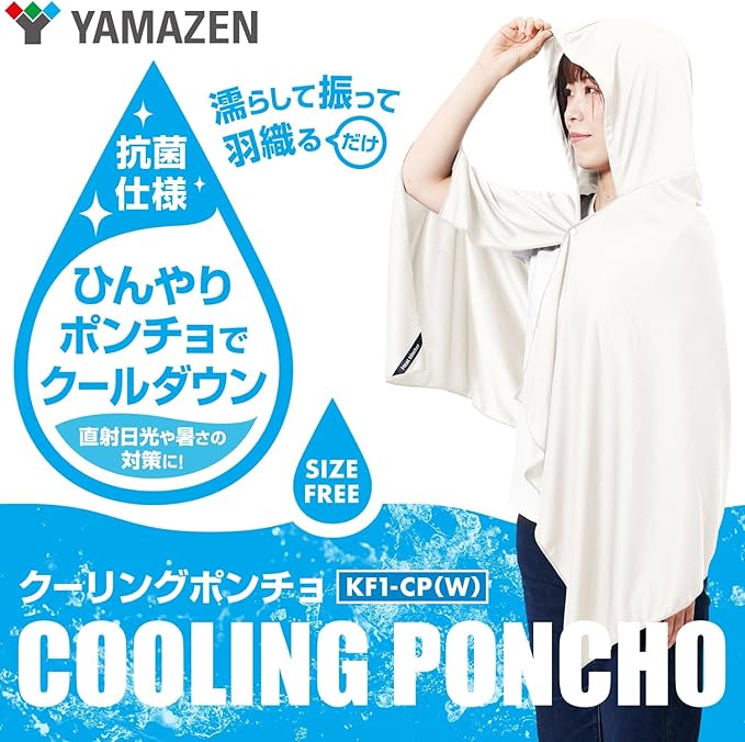 山善(YAMAZEN) クーリング ポンチョ 冷感ポンチョ 熱中症対策 冷感 抗菌効果 フリーサイズ スポーツ スポーツ観戦 レジャー アウトドア キャンプ 屋外 KF1-CP オフホワイト | oioioichan