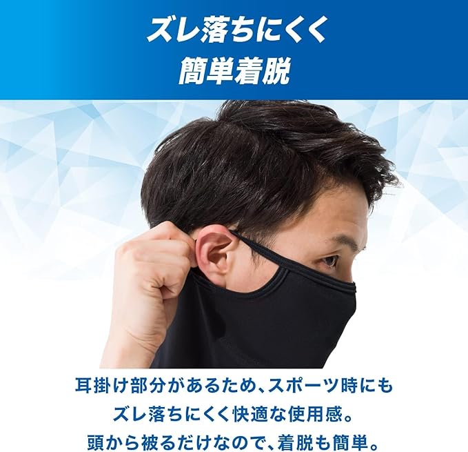 【ズレ落ちにくく、簡単着脱】軽くて薄いストレッチ性に優れた生地で、着けたときにフィット感があります。耳掛け部分があるためズレにくく、ソフトな設計で耳も痛くなりにくい仕様です。長時間の着用でもアウトドアやスポーツを存分に楽しむことができます。また頭から被るだけなので、着脱が簡単です。