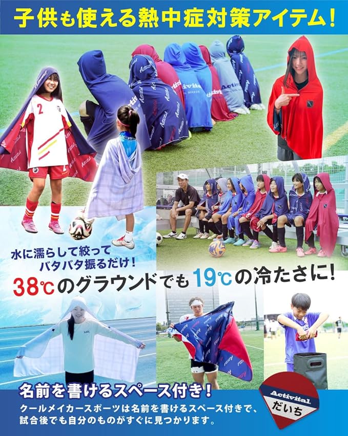 [Activital] アクティバイタル COOL MAKER クールメイカー 冷却タオルポンチョ スポーツブルー 肌温度-15℃ クールフェイスカバー クーリングタオル 冷感 暑さ対策 紫外線対策 スポーツ 日常生活 | oioioichan