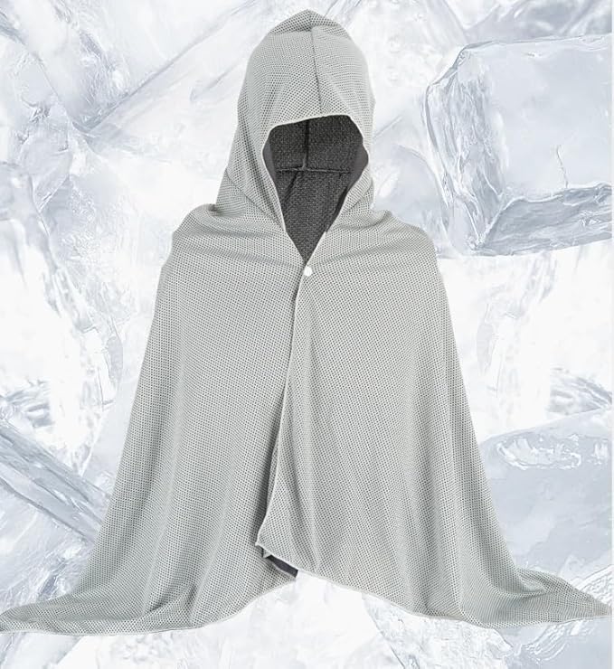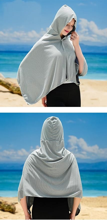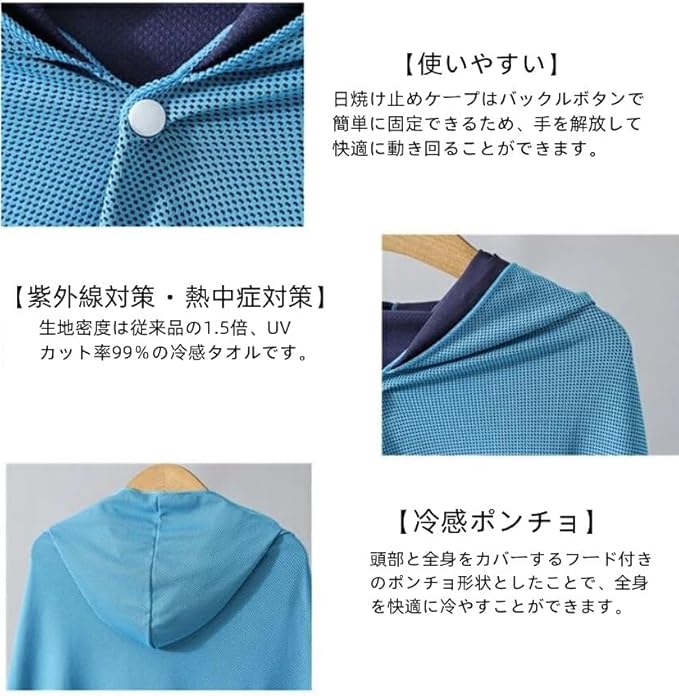 水に濡らして絞って振ることで冷却効果を発揮するクーリング冷感ポンチョ