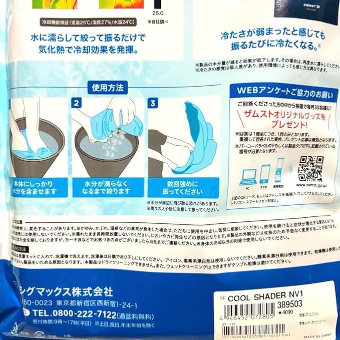 ザムスト冷感ポンチョCOOL SHADER 冷却シート 145x95 cm