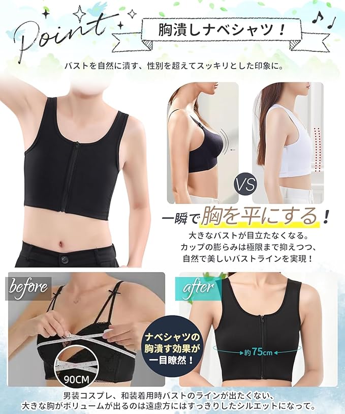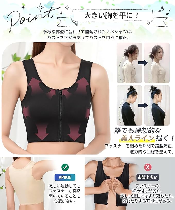 [APIKIE] ナベシャツ 胸が小さく見せるブラ CからAに・大きい胸を平に潰す 揺れない コルセット チューブトップ ブラジャー ノンワイヤー 小さく見せるブラ 胸つぶし加圧シャツ チェストベルト 和装 | oioioichan