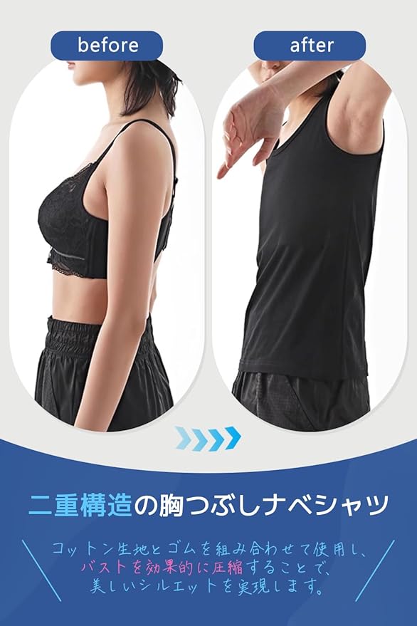 [Ttoitv] ナベシャツ 胸つぶし タンクトップ レディース 胸を小さく見える 3段ホック調節可能 揺れない ナベシャツ 胸潰し さらしブラ バスト 補正 コルセット 下着 コスプレ 和装 ブラ 男装用 | oioioichan