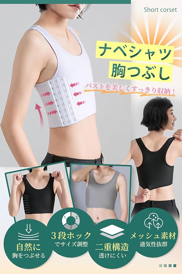 [Ttoitv] ナベシャツ 胸つぶし ショート丈 胸が小さく見せる チューブトップ ブラジャー スポーツブラ 胸揺れない 補正下着 加圧シャツ チェストベルト 胸つぶし コスプレ 男装 さらしブラ 和装ブラ | oioioichan