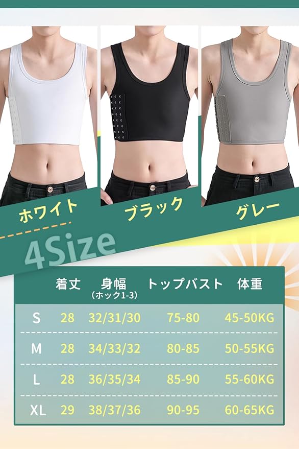 【簡単に使え・胸を小さく見せる】これはバストを自然に潰す事で美しいシルエットに見せるショート丈のタンクトップ型ナベシャツです。右側にホックがあり、着脱しやすい、後ろに手が届かない女性も楽に使えます。バストを小さく見せたい方、スポーツや運動時揺れ出来るだけ押さえたい方、コスプレや男装される方におすすめします。