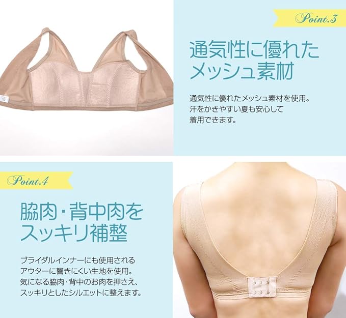 特徴 :2段3列フック ・ B~Hカップをほぼ平らなバストへ変身 ・ 長時間着用でも苦しくない