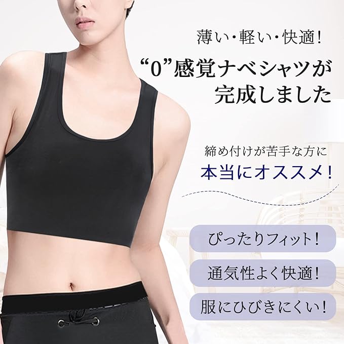 [CtriLady] 胸つぶし ナベシャツ タンクトップ 胸を小さく見せる ブラバスト 補正 レディース バストダウン スポーツブラ 男装 黒 男胸 下着 和装ブラ ハーフタンクトップ型 バストフラット 透けない 脱着簡単 伸縮性 通気性 | oioioichan