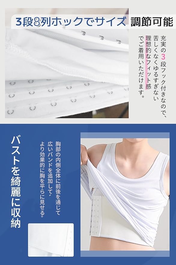 [Ttoitv] ナベシャツ 胸つぶし タンクトップ レディース 胸を小さく見える 3段ホック調節可能 揺れない ナベシャツ 胸潰し さらしブラ バスト 補正 コルセット 下着 コスプレ 和装 ブラ 男装用 | oioioichan