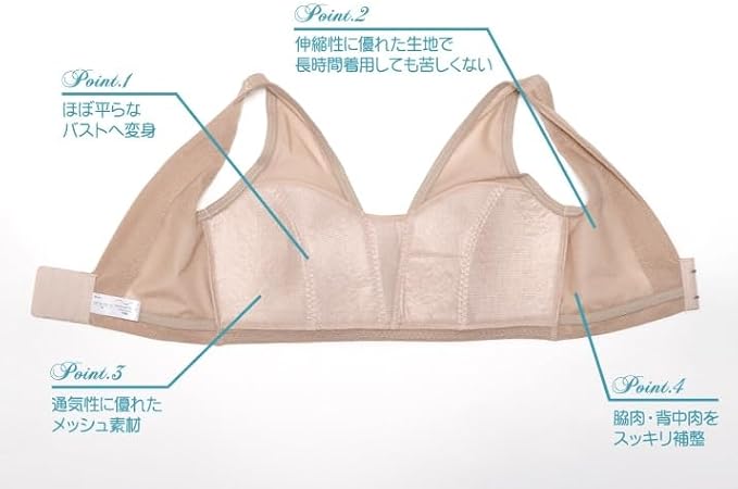 特徴 :2段3列フック ・ B~Hカップをほぼ平らなバストへ変身 ・ 長時間着用でも苦しくない