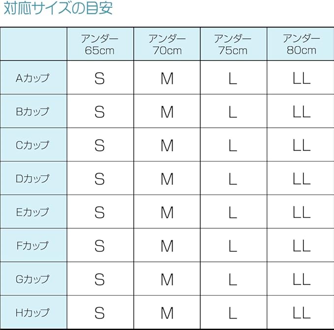 サイズ:S(アンダーバスト63~67cm)・M(アンダーバスト68~72cm)・L(アンダーバスト73~77cm)・LL(アンダーバスト78~82cm)