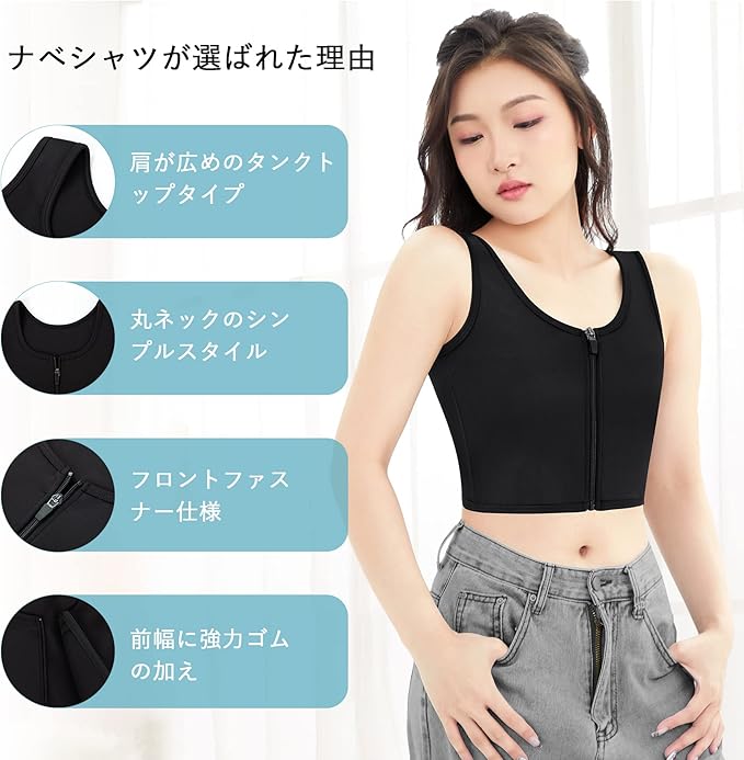 4:【一枚で多機能】大きな胸に適した胸を小さく見せるキャミソールは、バストを小さく見せたい方、スポーツや運動時揺れ出来るだけ押さえたい方、浴衣や着物を着用される方、コスプレや男装される方のために設計されています。胸を平らにして、男の子のようにカッコイイになりたい場合や、大きな胸で不自信な場合は、この胸 つぶしのナベブラが最適です。