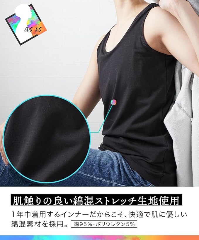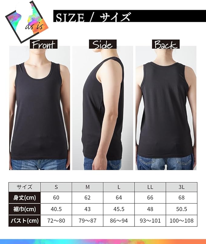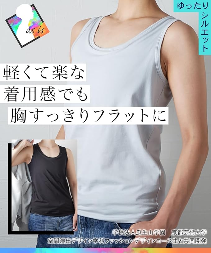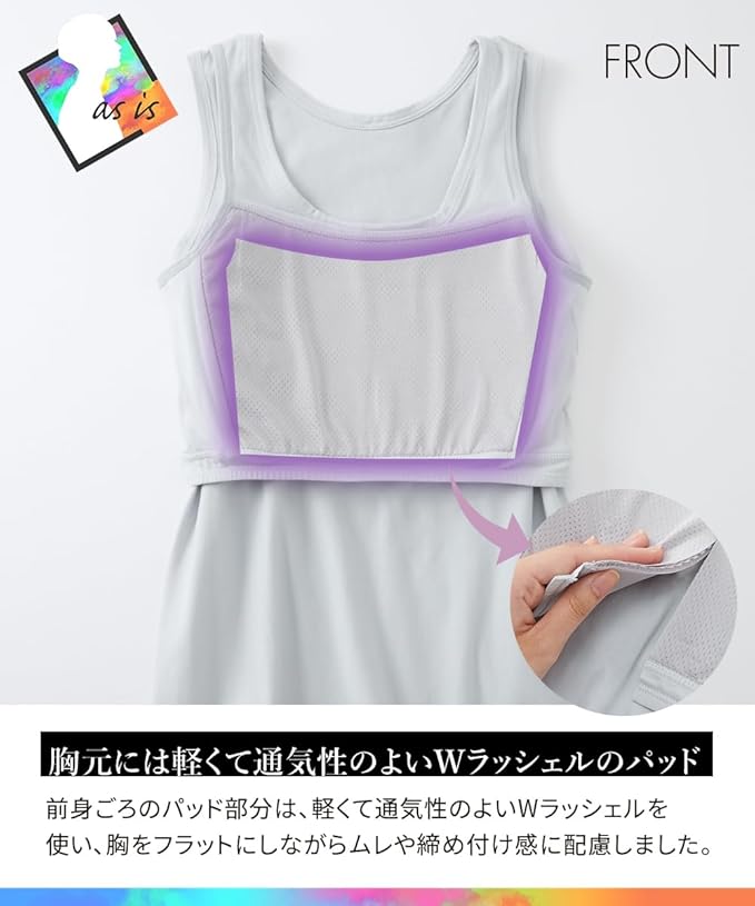 【FTM】トラシャツ しめつけないけど胸をフラットにするタンクトップ。表生地は綿95%でやさしい肌ざわり通気性のよいWラッシェル素材でしめつけず胸をフラットにします