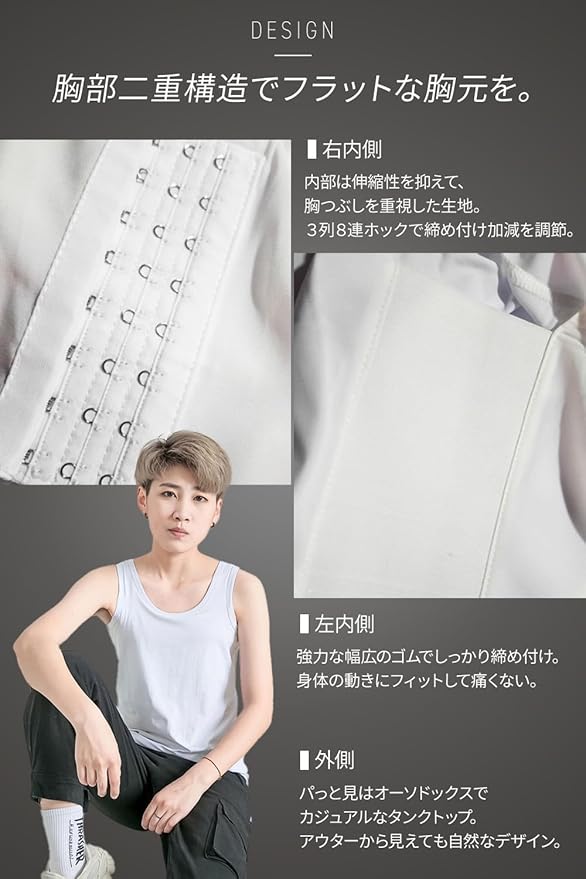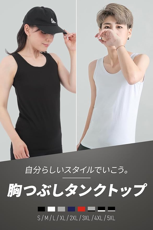 ✅自然で目立たない 胸潰し ナベシャツ タンクトップ✅サイズ 全8サイズ S〜5XLまで。必ず見つかるジャストサイズ。コスプレイヤーや胸を小さく見せたい方に聞き取りを実施し、様々な状況を想定して商品開発をいたしました。