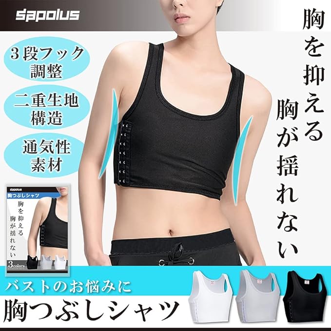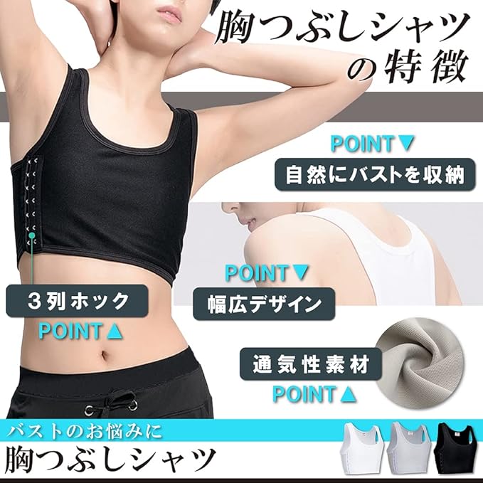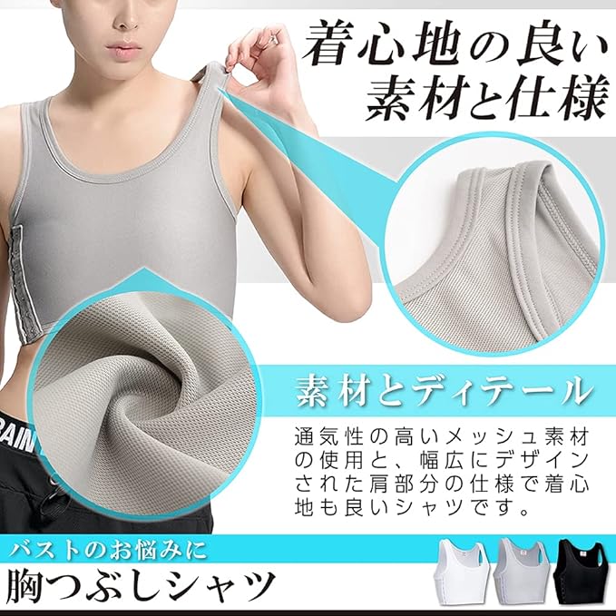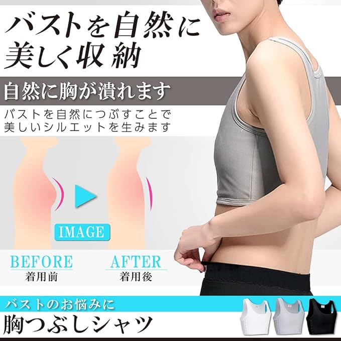 【こんな方におすすめ】胸が大きく太って見える、スポーツ時に揺れて痛い、自然にバストを小さく見せたい、コスプレ男装の衣装で使いたい。