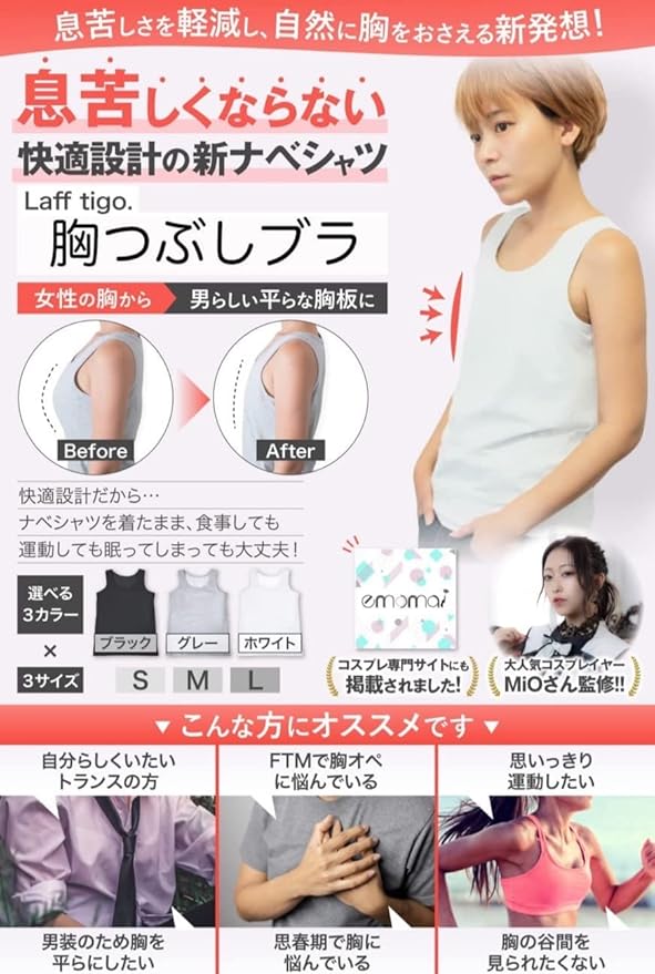 【L:胸囲85~89cm 】 身長152.5~157.5cm・体重56~60㎏ 身長157.5~162.5cm・体重58~62㎏ 身長162.5~167.5cm・体重60~64㎏ 身長167.5~172.5cm・体重62~66㎏