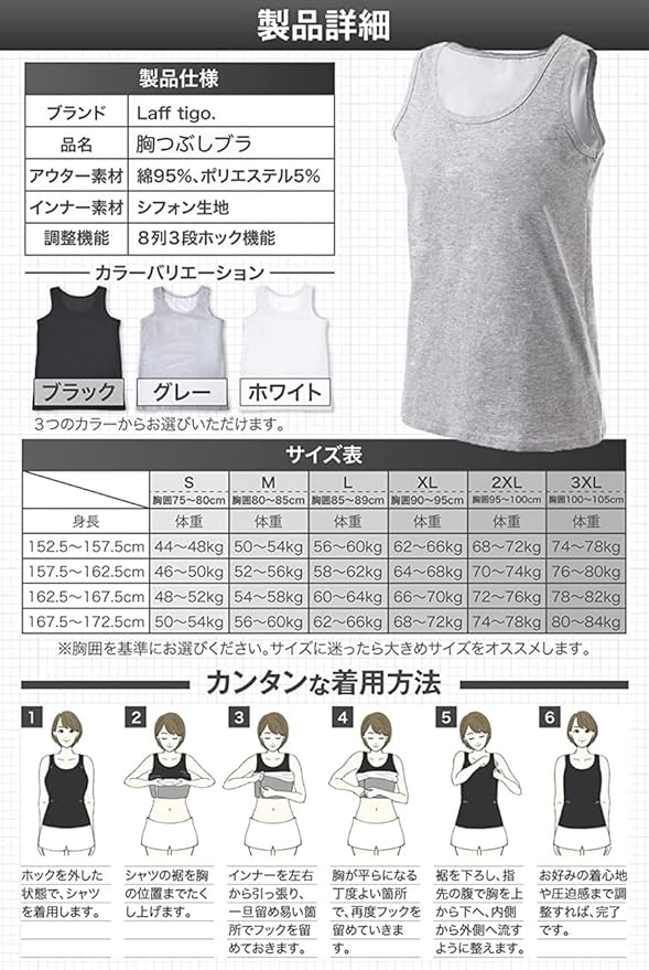 【XLサイズ-胸囲90~95cm】 身長152.5~157.5cm・体重62~66㎏ 身長157.5~162.5cm・体重64~68㎏ 身長162.5~167.5cm・体重66~70㎏ 身長167.5~172.5cm・体重68~72㎏