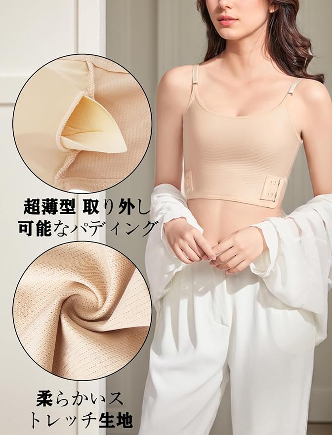 【恥ずかしさ防ぎ】しっかりした二重ね生地で、胸元に厚みのあるパッドが付き胸をやさしく包み込みます。薄手の服を着る時に乳首が出てくるの恥ずかしさを防ぎます。
